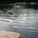 Om 14.00 uur zijn we terug op de camping. De zon schijnt, het is 280. Om af te koelen zwemmen we in de rivier. En daarna een koel glaasje witte wijn uit de koelkast van de camper.