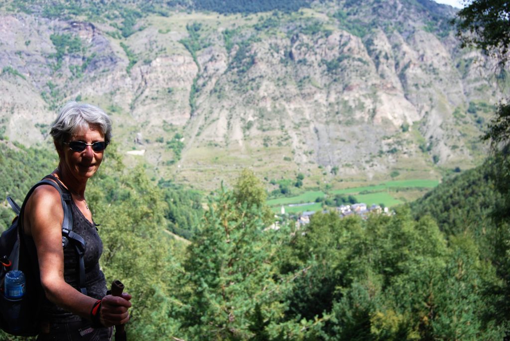In het stadje Vielha maken we een lunchstop. In een van de vele bergsportwinkeltjes koopt Nini nieuwe wandelschoenen.